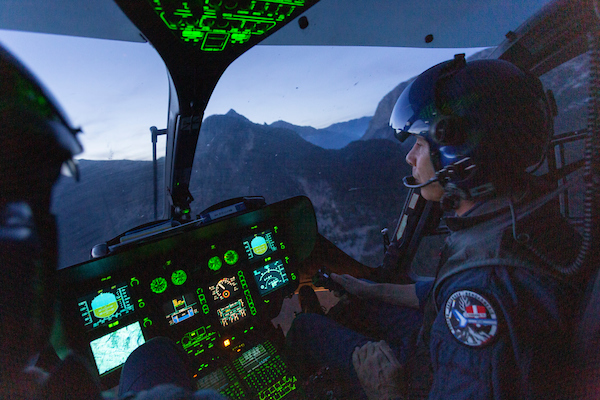 Au cours de l’été 2020, elle s’est rendu avec son fils à l’aérodrome de Mimizan où stationne l’appareil qui effectue le sauvetage côtier de Mimizan à Contis : ECU40. La météo était exceptionnelle et l’accueil de l’équipage l’a encouragée à revenir à la tombée de la nuit. Bien lui en a pris, elle a capturé une photographie parmi les plus exceptionnelles d’un Ecureuil en stationnement, celui-ci étant positionné sur sa DZ, par nuit sombre, avec pour arrière-plan la voute céleste.