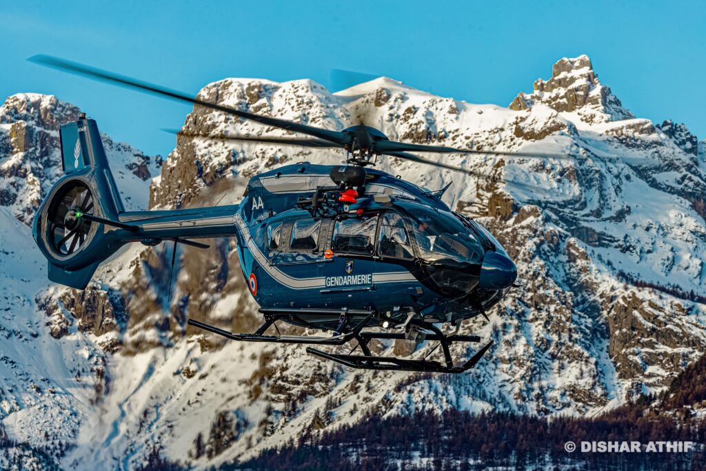 Dishar Athif est un photographe qui vient de réaliser quelques prises de vues du H145D3 d’Airbus Helicopters qui ont été très vite remarquées par les spécialistes du monde de l’hélicoptère. En effet, celui-ci a trouvé l’occasion de prendre le tout premier modèle du futur bi-moteur des Forces Aériennes de la gendarmerie Nationale, alors que les équipages du Centre de Vol en Montagne (CVM) de la Gendarmerie de Briançon le testait en haute montagne ». L’auteur confie aimablement aux Ailes de la gendarmerie et à Aerogend.com, ces clichés magnifiques pour notre plus grand plaisir.