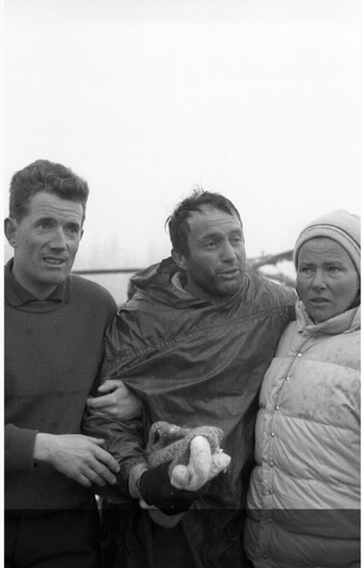 Alors Jean Fanton explique. Comment le samedi soir, ils ont décidé de grimper toute la nuit sous « un clair de Lune magnifique ». Le mauvais temps les a surpris à mi-hauteur de la pente : « Au début nous n’avons pas pris ça très au sérieux. Puis plusieurs coulées de neige ont balayé le couloir… » Aussitôt, ils ont quitté le couloir et sont arrivés au sommet en passant plus à gauche. Mais la tempête de neige était là-haut si violente ! À tel point que Jäger doutait qu’ils soient au sommet et qu’il était impossible de trouver la voie de redescente. À une centaine de mètres sous le sommet, ils ont donc dressé leurs tentes. Le dimanche s’est passé à attendre.