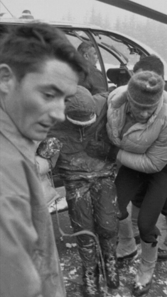 Batel sera le dernier à sortir de l’hôpital, Dès le jeudi Jäger et Sorgato ont été libérés. Et Fanton ? L’entretien avec le journaliste fini, on le voit l’après-midi même en train de déneiger les abords de son chalet et de couper du bois. L’alpiniste en perdition à 4200m est redevenu un Chamoniard lambda…
